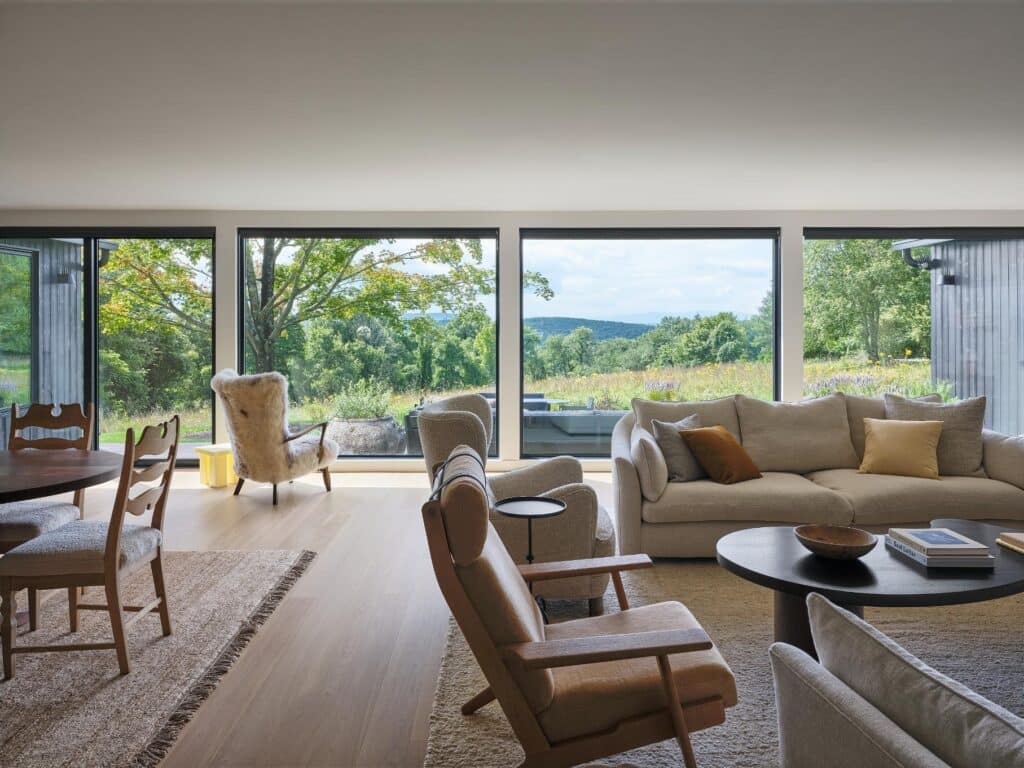 The view was critical in designing this Hudson Valley retreat for Carta Creativesโ€™ Manhattan clients who wanted to renovate their weekend retreat of eight years. While the framework of the house did not change, everything was given an update. The public rooms of this home are open to each other and have large glass sliders leading to outdoor living space. โ€œEverything comes together in that space,โ€ says Elana Tenenbaum Cline, the design firmโ€™s founder and creative director. The kitchen, dining room and living room all revolve around the star player: โ€œthese crazy sunsets,โ€ says Cline, who left the focus on the view. โ€œWe wanted your eye to go to the outside. We didnโ€™t want it to be plugged straight into a piece of furniture.โ€