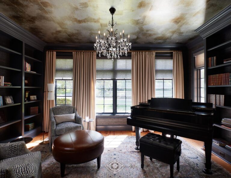 Since this was the first project Fong was doing with her clients, she met with them to review their wish list and preferences. The family room and bar were part of an entire first-floor renovation that included a kitchen and breakfast area, family room, living room, office, mudroom and front hall. The doors next to the bar in the intimate living room open to the family room to create lots of flow from room to room for parties and put the bar at the center of the action. โListening is a very critical skill to adapt to your clientsโ wishes and dreams,โ says Fong, who begins each relationship with her clients by holding a two-hour meeting to learn their tastes and preferences. โEach project isnโt just what I like to do, itโs what they love.โ