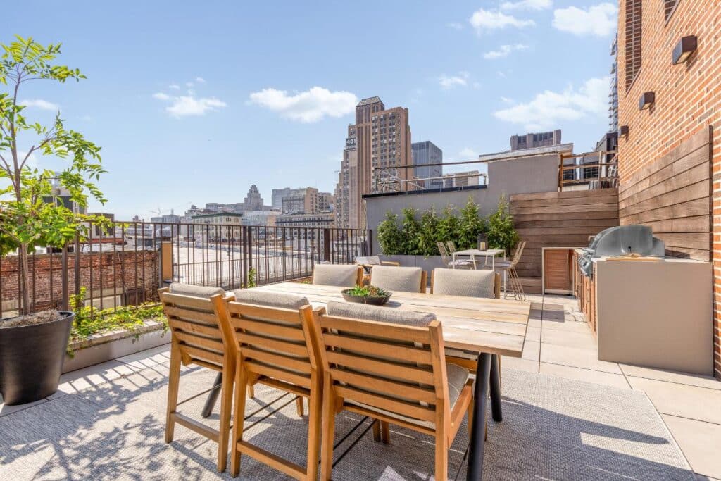 Finding more than 1,700 square feet of private terrace in SoHo is rare and this property has three outdoor terraces. โ€œEach of the three outdoor sanctuaries has its own personality,โ€ attests Javeri. โ€œOne for dining located right off the kitchen, one for lounging and entertaining located right off the living room equipped with a fire pit, and one that serves as your own private zen escape on the top level. Itโ€™s a townhouse in the sky, which is something you donโ€™t often see downtown.โ€