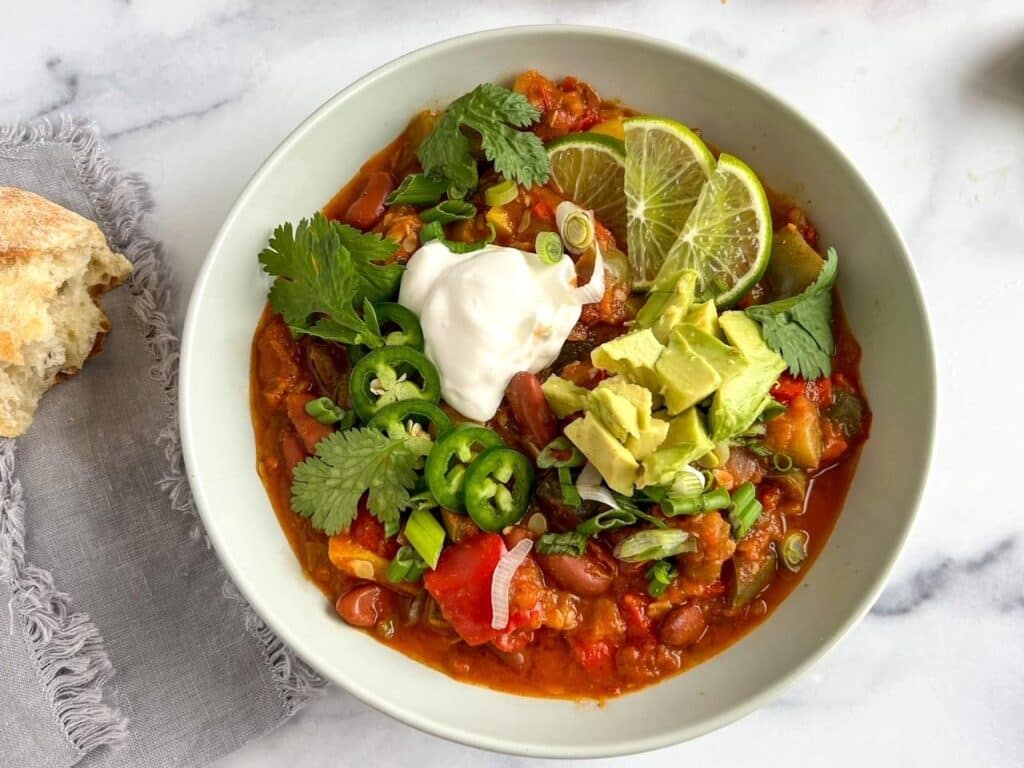 Hearty vegetarian chili packed with beans, vegetables, and warm spices. A cozy, protein-rich meal perfect for weeknights. Easy, flavorful, and comforting.